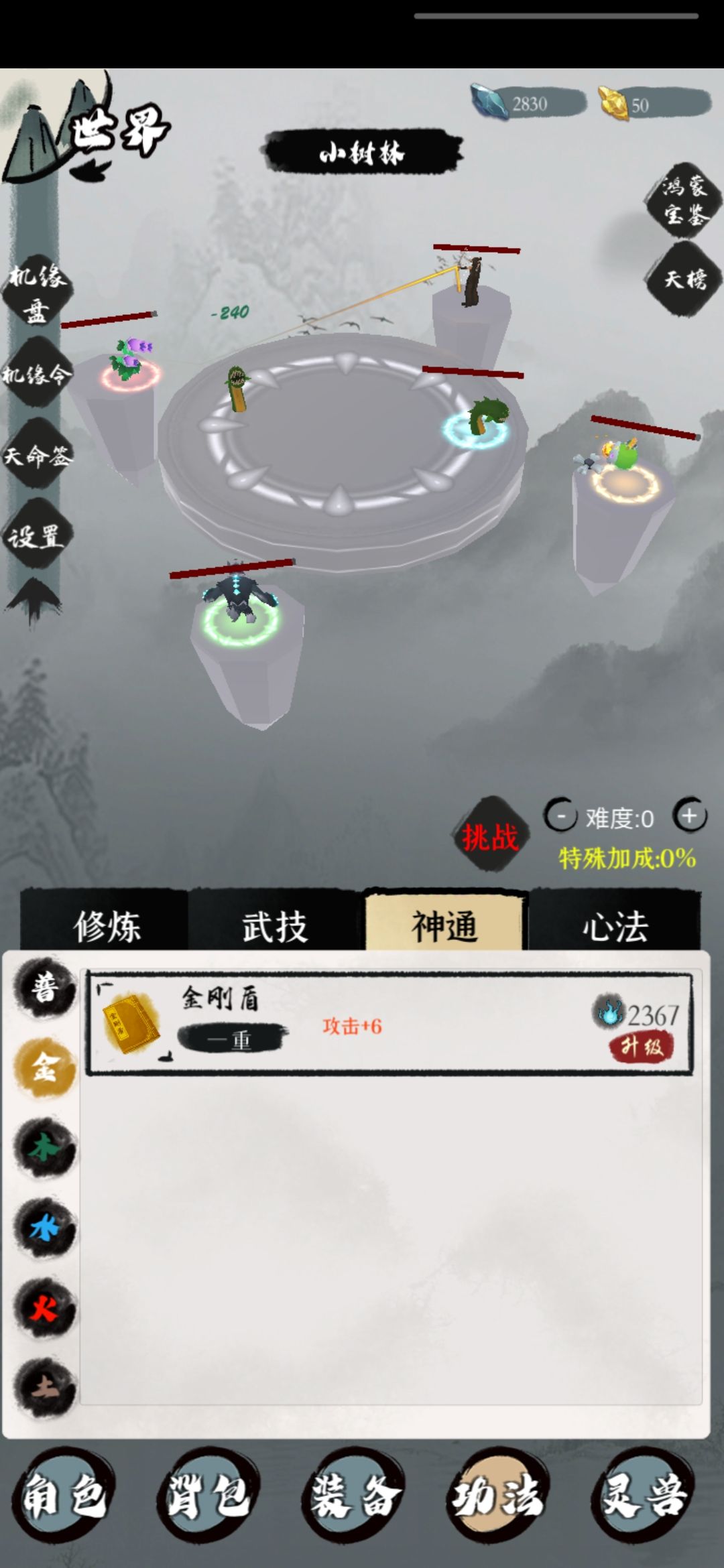 2.武技(使用修为进行升级)