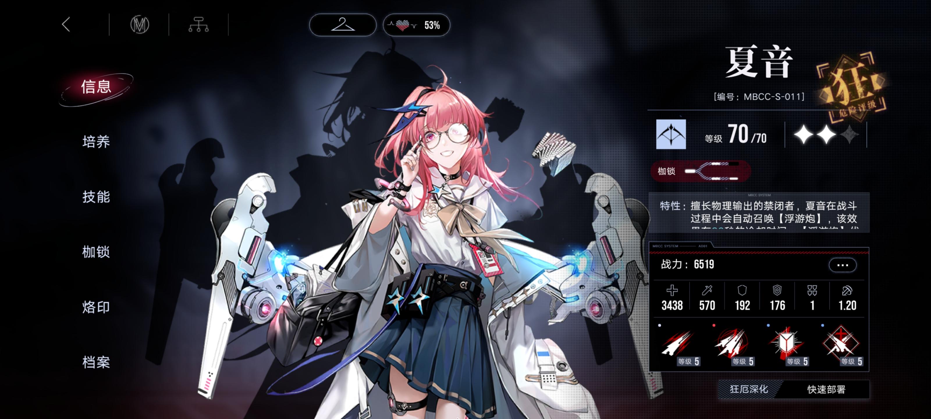 附上练度防云,了解这个专属烙印以后都不想开3阶了,感觉不如去练10娜😓只能说练了夏音的也谨慎三阶,看的太让人破防了