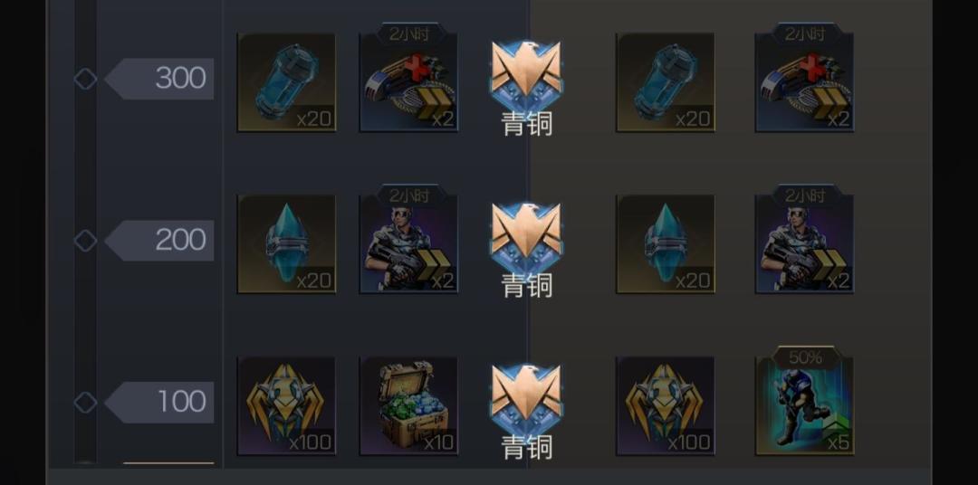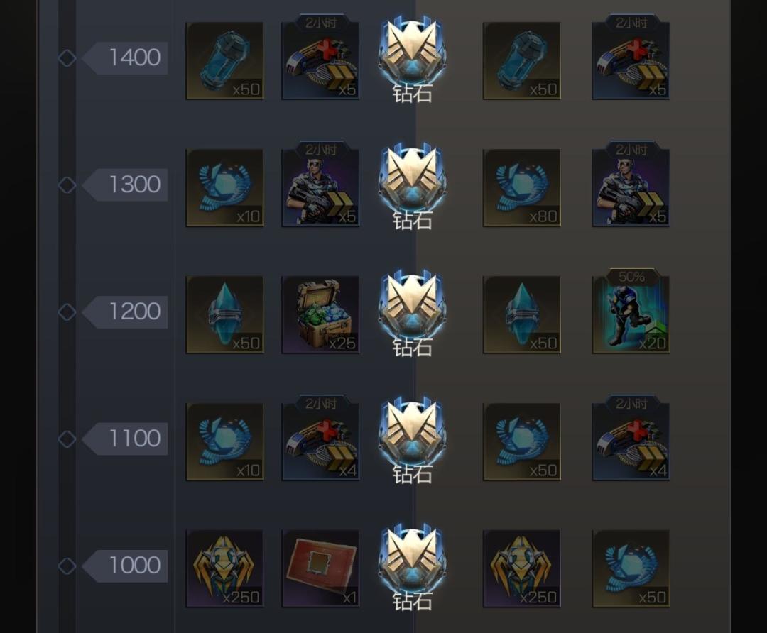 青铜、白银、黄金、钻石、王者五个段位的具体奖励如下: