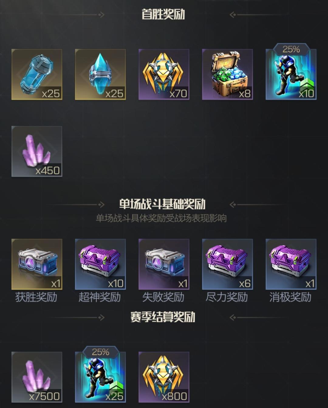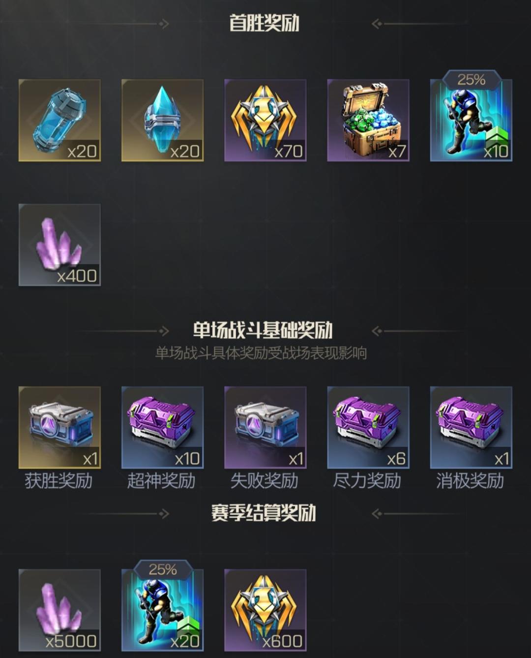 战斗奖励分为首胜奖励、单场战斗基础奖励和赛季结算奖励且每场战斗都有丰厚的奖励可领取。