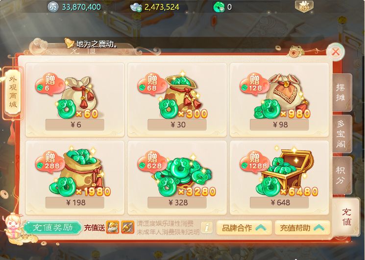 七,以上是我个人综合新区情况,给一些想充新区朋友的一些提议吧,另外个人建议,可以充一个成长基金,因为这个在新区作用还是比较明显的,买一些限购啊,不要去浪费挖宝之类,毕竟有限,如果说没出好东西,那就不好玩了,新区综合一个问题,能凑合就凑合,能用就用,不要为了追求一个忽视的炼化,而去用掉自己存了很久的钱,我们要给自己定一个目标,比如别人杀塔五,我杀塔四就可以,把能卖的全卖掉,一些东西涨价就留着,比如净瓶玉露,这些坐骑的东西,到后面会贵一些,而且后期,装备也逐渐便宜了下来。