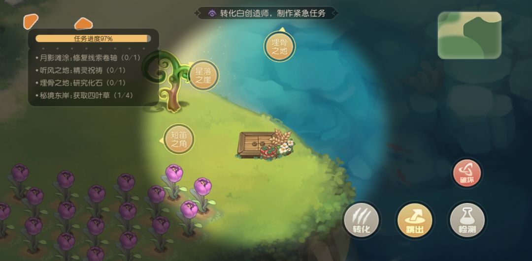 *做任务可以尽量找无面板的优先做,去化石和祈祷尽量往里面靠,这是我的个人经验。