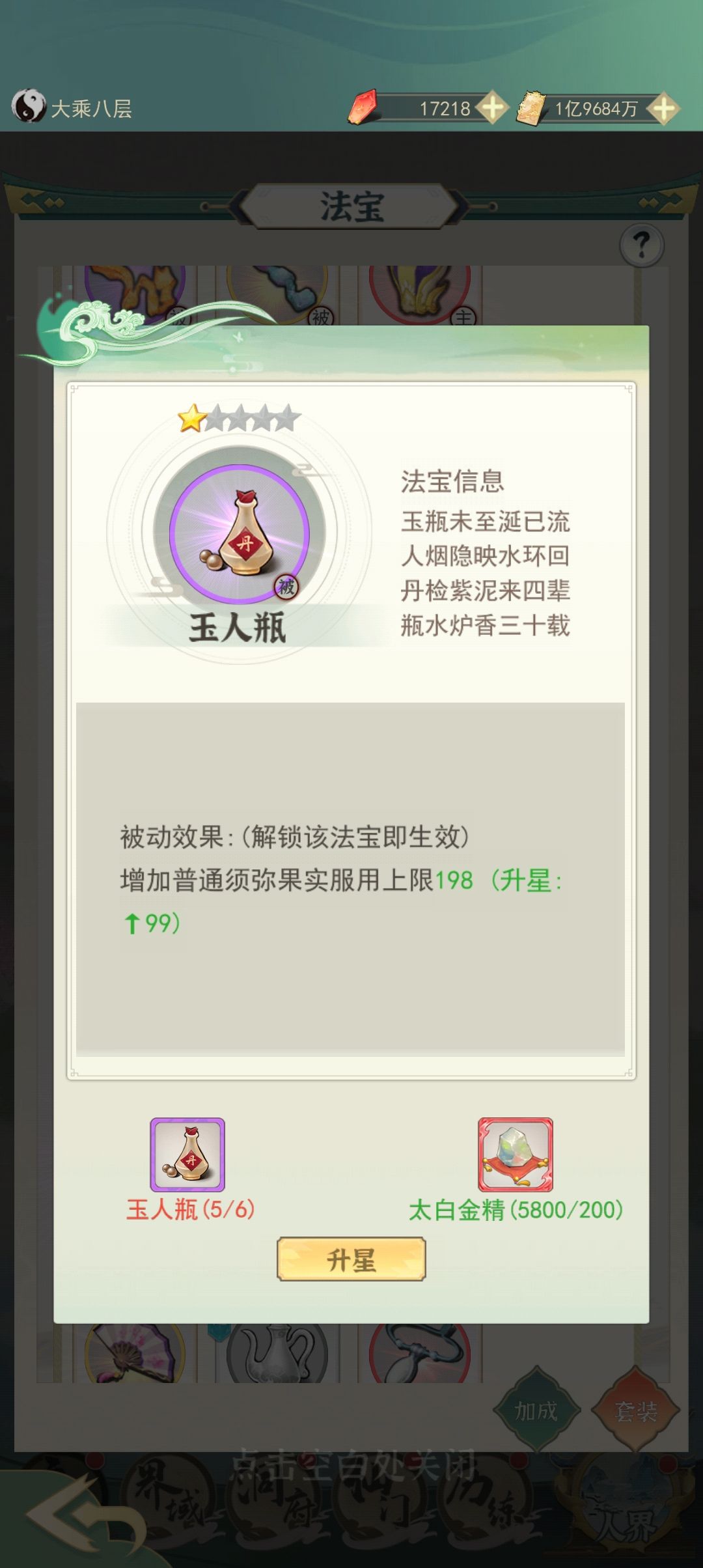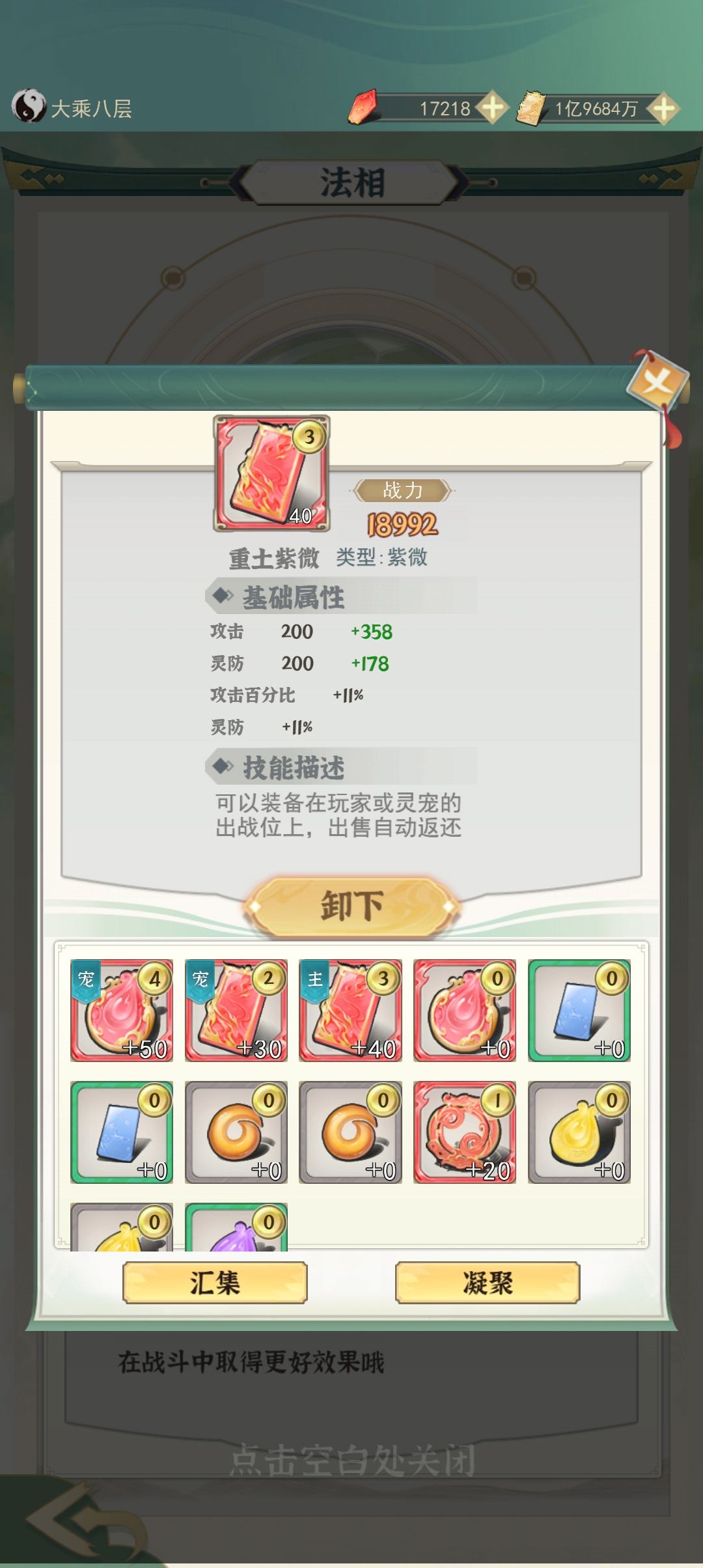 法相除非你充很多不能只带这个,这玩意除非你充两万,不然灵防都没多少,灵防加的属性是最终免伤上线要七千五,没充个两三万,根本凑不齐。