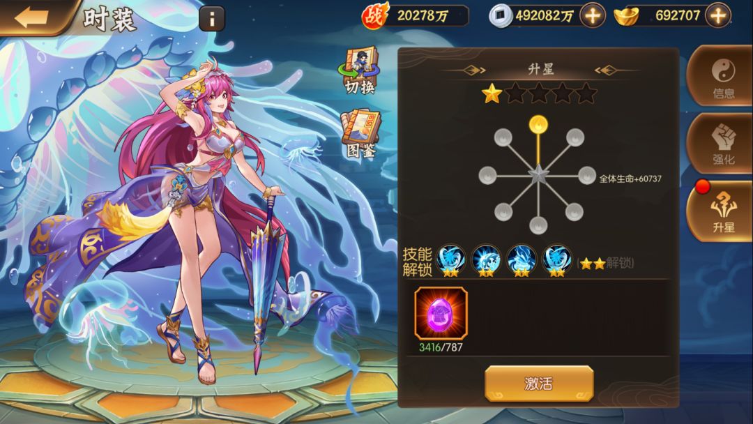 升星后不仅时装属性大幅提升,时装技能也会随之增强