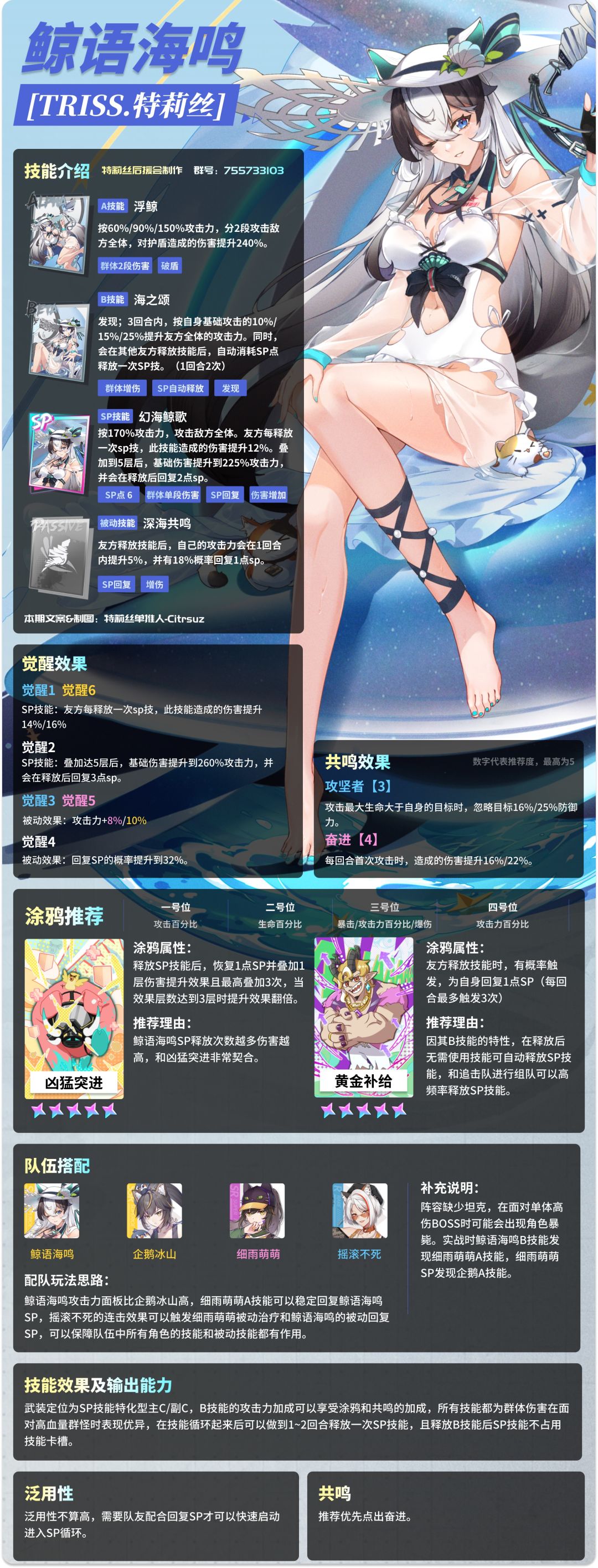 《普通攻击是群体伤害技能有增伤有发现SP技能满了会自动放的超级无敌可爱的泳装特莉丝你喜欢吗?》