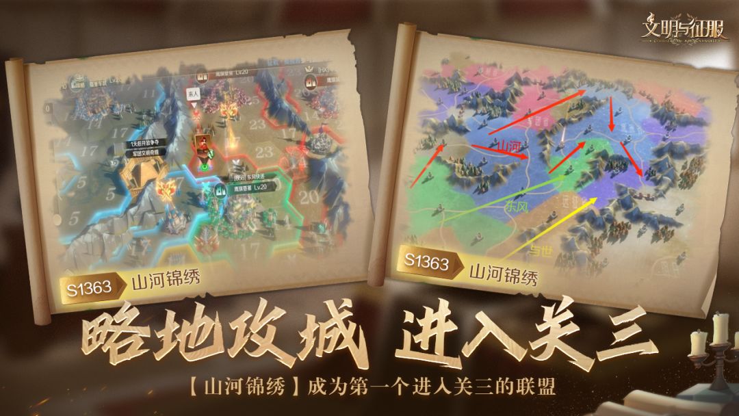 在拿到一赛季“至高”以后,山河并没有成为众矢之的,反而通过外交等一系列方法,与众多盟友形成了默契的配合,在S2赛季开局不利的情况下,冷静的制定战略规划,并努力将其一步步变为现实,最终大获成功。他们的故事告诉我们,目标高远并不可怕,“至高”也并非要举世皆敌,文明的世界每一天都会产生奇迹,期待【山河锦绣】在接下来的征程中,再次为我们带来更加精彩的故事!