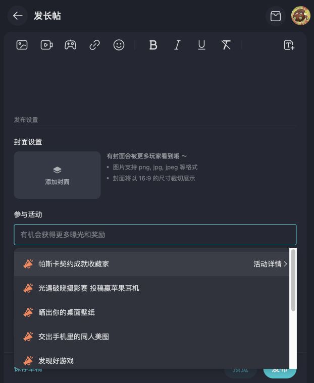 1. 网页端单独发布的长帖需在标题中加上#成就收藏家#,并于发布页面最底部「参与活动」处添加#帕斯卡契约成就收藏家#。