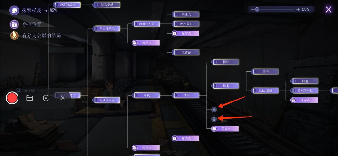 【隐藏S结局】: 当普通线达成【S】结局后,在【1-2】小节进行回溯,选择方框左上角带有隐字的小节,进行调查。