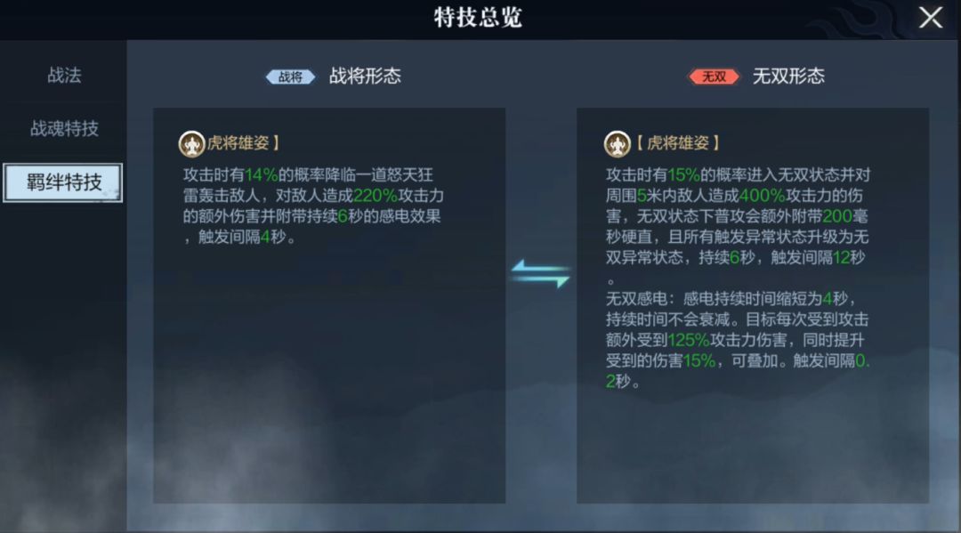 无双形态羁绊特技
