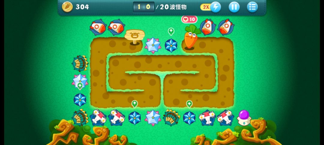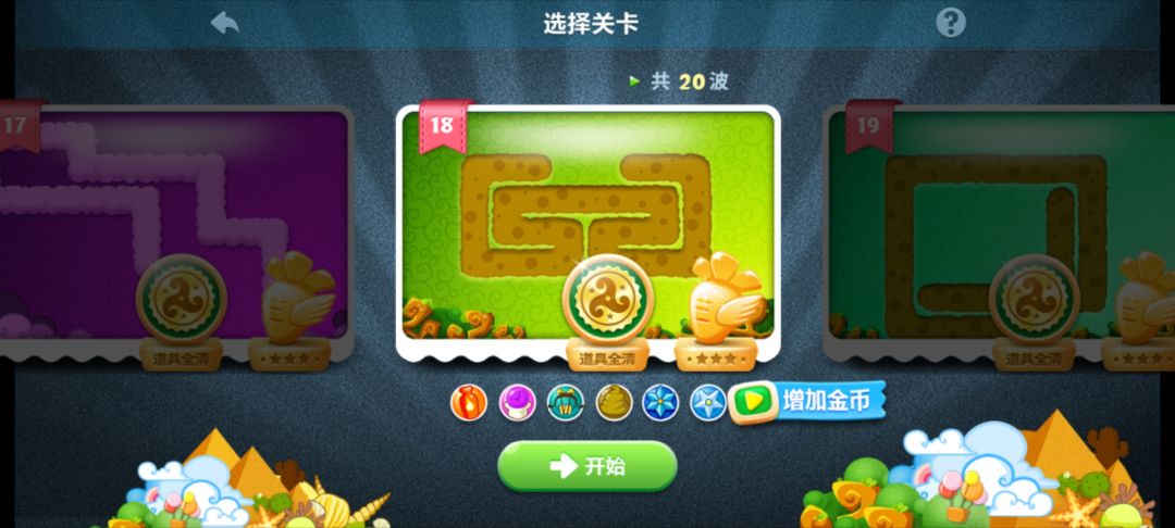 开局两个空位左边箭塔右边魔法球,魔法球优先升2级清出一个小宝箱,飞机清出来后升满先横着清图,然后左右清图,最后上面清图,火箭清出来优先升满。