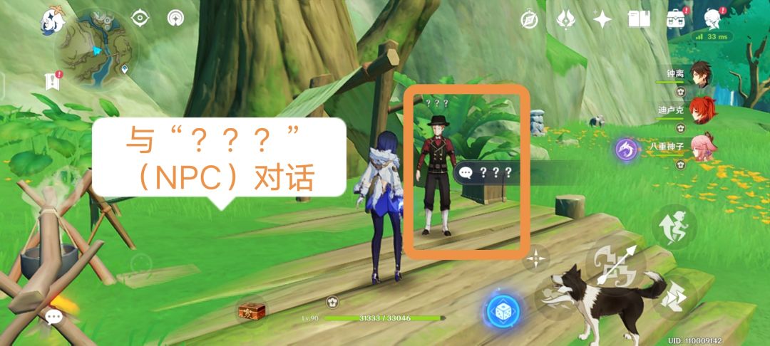 在大树下的帐篷旁边,可以遇到一位叫“???”的NPC,与其交互进入对话,任务开始。