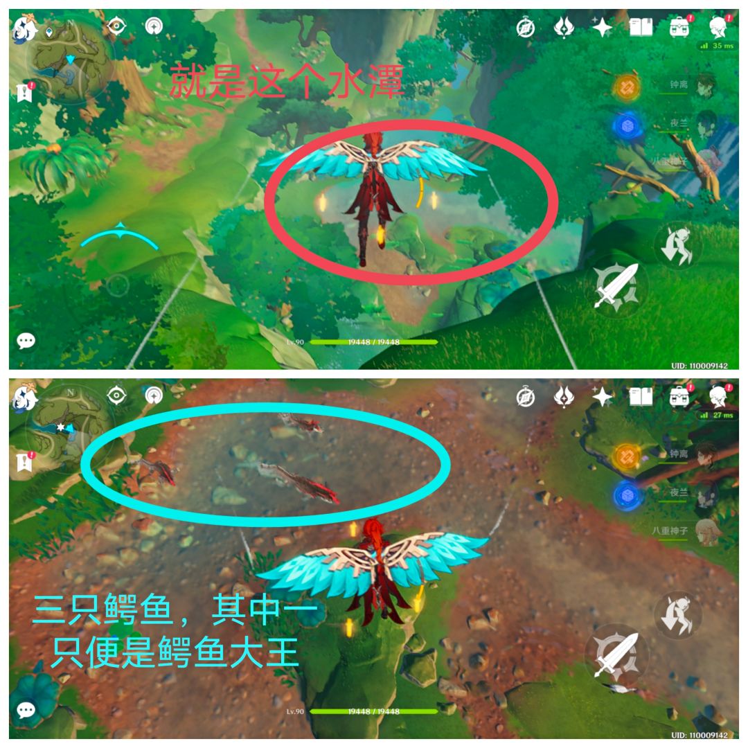 飞下去时远远可以看见一个水潭,水潭里有三只鳄鱼,两小一大,大的那一个鳄鱼便是鳄鱼大王。
