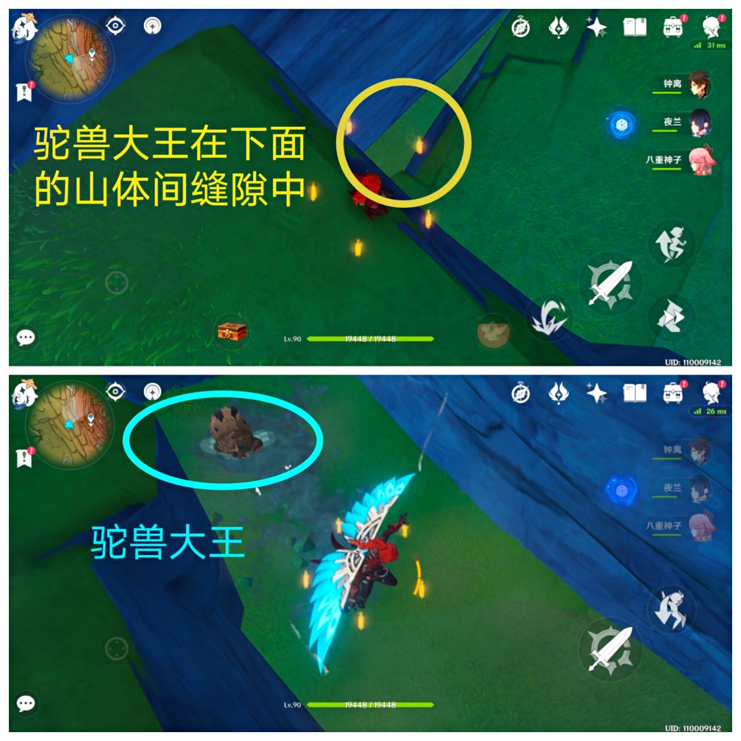 驼兽大王在东边是某个区域(拦在通往璃月的道路上)。