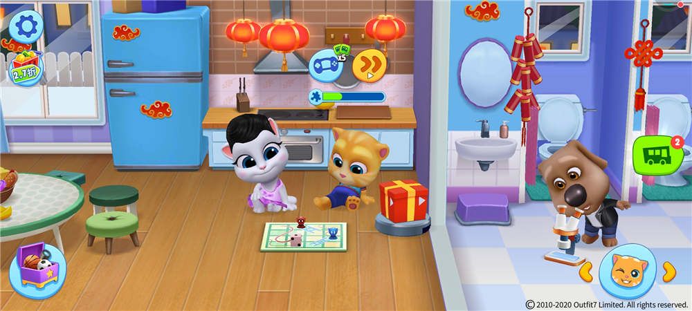 《汤姆猫总动员》游戏中,前院小花园门口有随时待命的小巴士,使用巴士特别货币(可通过日常、或者玩小游戏、购买获得)可搭乘小巴士前往城镇逛街。