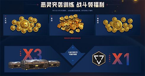9月15日-9月30日突袭训练期间,去指定模式完成对局也可获得金币、大头币、劫掠币等货币道具,完成全部任务还能额外领取军备箱与构造核心奖励。