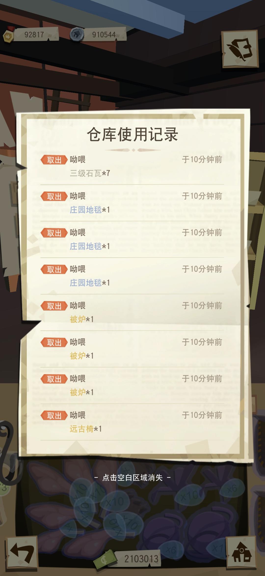 简单整理一下事情经过。此人四天前通过我发的招人贴直接进镇,11级衣房屋10级也就让他加入小镇了,进镇之后往仓库存了大量家具背包衣服刷贡献。并声称自己没过69w的河,以此拿取大量工艺品。我们以为他是为了过河也没特别注意,直到今早此人换完了满仓的工艺品还有大量家具退镇。