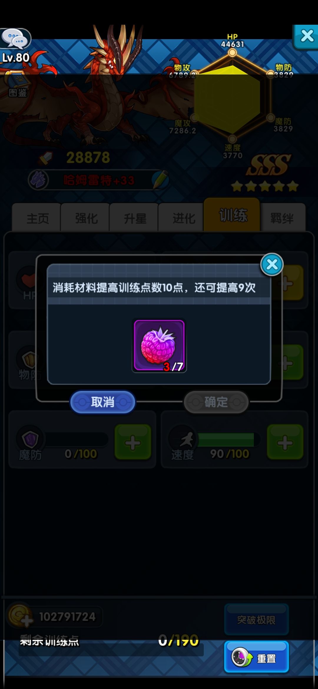 训练点数用完了可以继续道具突破