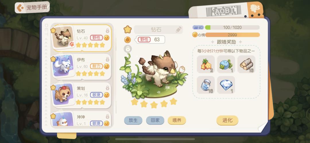 最后的结语:我是真的没有想到,一个休闲游戏的宠物系统居然让奥比岛弄的这么黑,这么坑,一个真正有价值的宠物,要有你喜欢的外形,好的跟随奖励,好的五维属性,还有有高级5星如哮天犬,还有能够变异,哪怕你已经拥有了这样一只目前堪称完美的宠物,你还要为满探索而培养其他宠物,并且,探索难度还会伴随着你等级的提升而整体提升