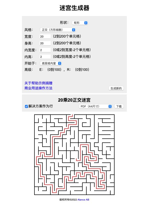 这个网站可以自己调参数来生成随机迷宫,非常好用,推荐玩家大大们试试哦~