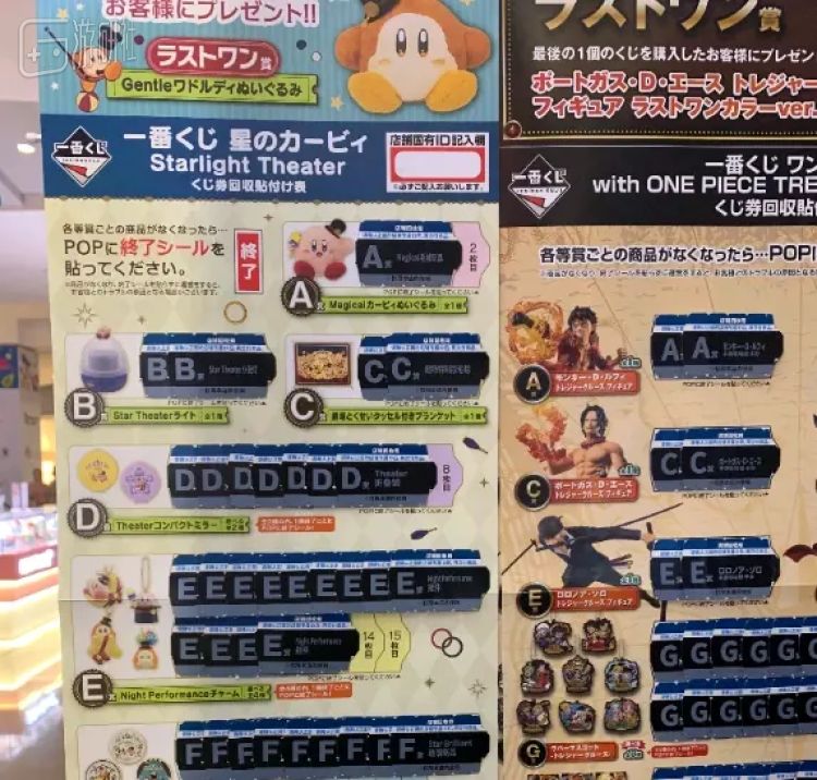 如今,在日本的大街小巷,从便利点到电玩店到模型店到游戏厅,几乎随处都可以看到一番赏的身影。在一番赏的海报面前,常常看到有人站在那里注视着奖池的情况,他们通过海报飞快判定奖池里各类奖励的分布情况及奖券的剩余数量,找准时机在合适的情况下买下几张刮开碰碰运气。部分玩家的认真程度,堪比在福利彩票站流连整日研究彩票形式及趋势,并根据研究情报及时下注的中年男人们。