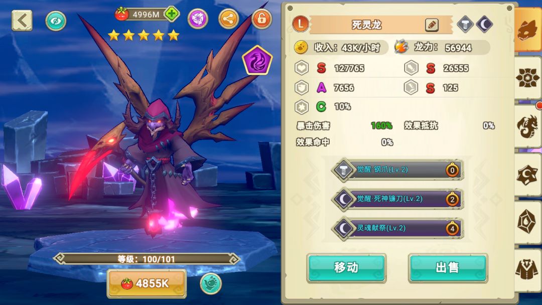 【觉醒·死神镰刀】对敌方造成220%攻击的暗属性伤害并吸取30%伤害的血量(LV1)