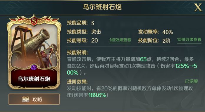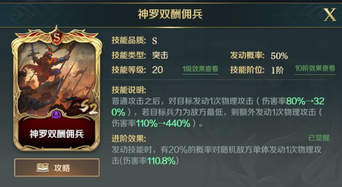 从S1赛季开始就是突击队的重要技能,增加主将力量,且具有非常高的单体伤害率。突击队副将装配时,不仅可以提升主将输出能力,还能使自己也兼具一定的输出。
