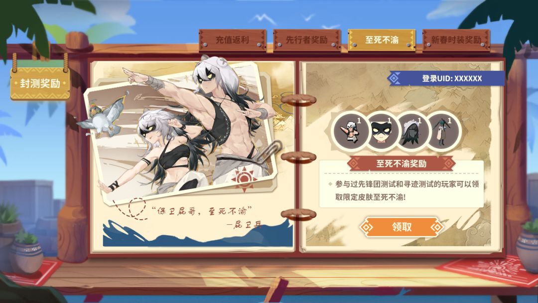 活动地址:进入游戏—点击左上角头像—点击活动—点击封测奖励,绑定账号即可领取。