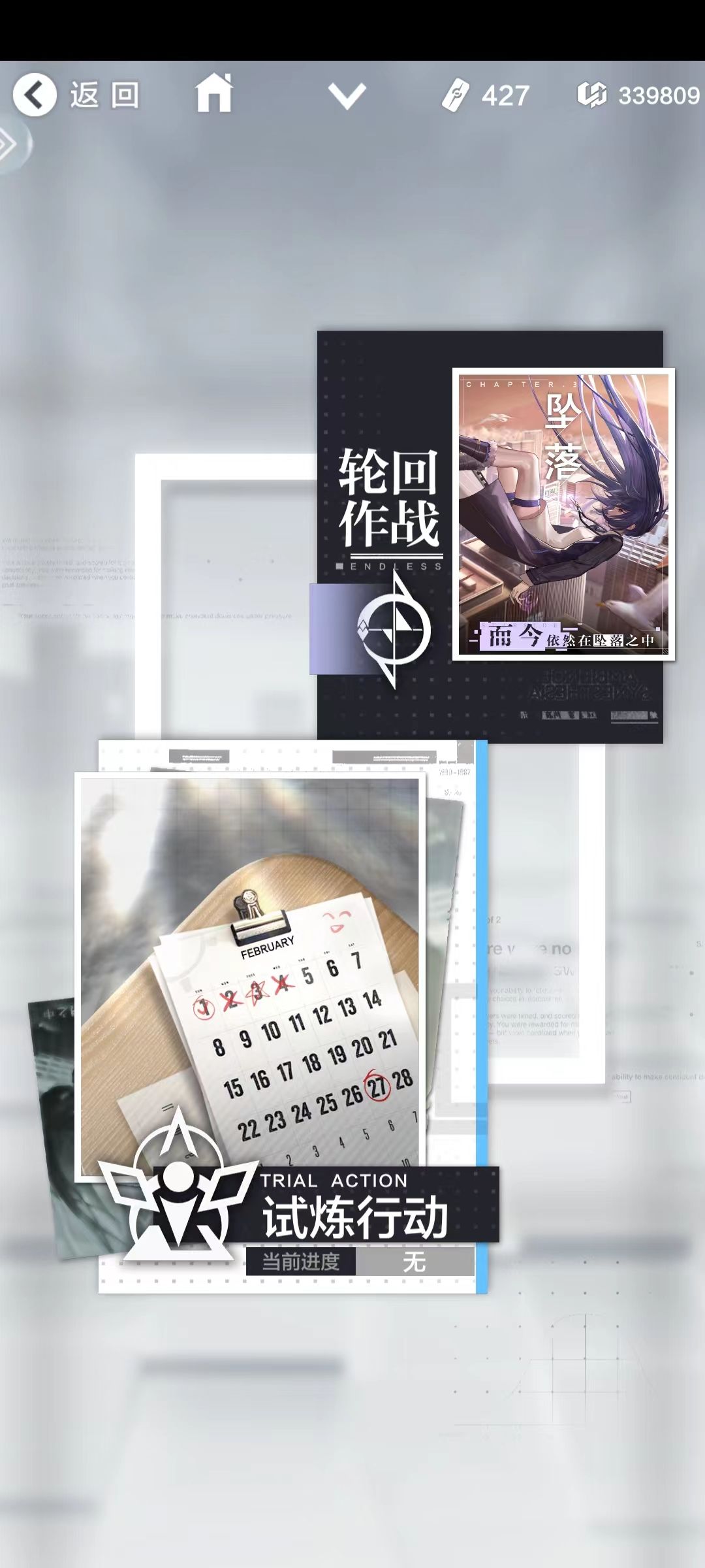 后来发现这游戏开始的基础就是,通过试练行动打出来一个队伍,然后通过这个队伍去推轮回作战解锁新的遗物来循环。