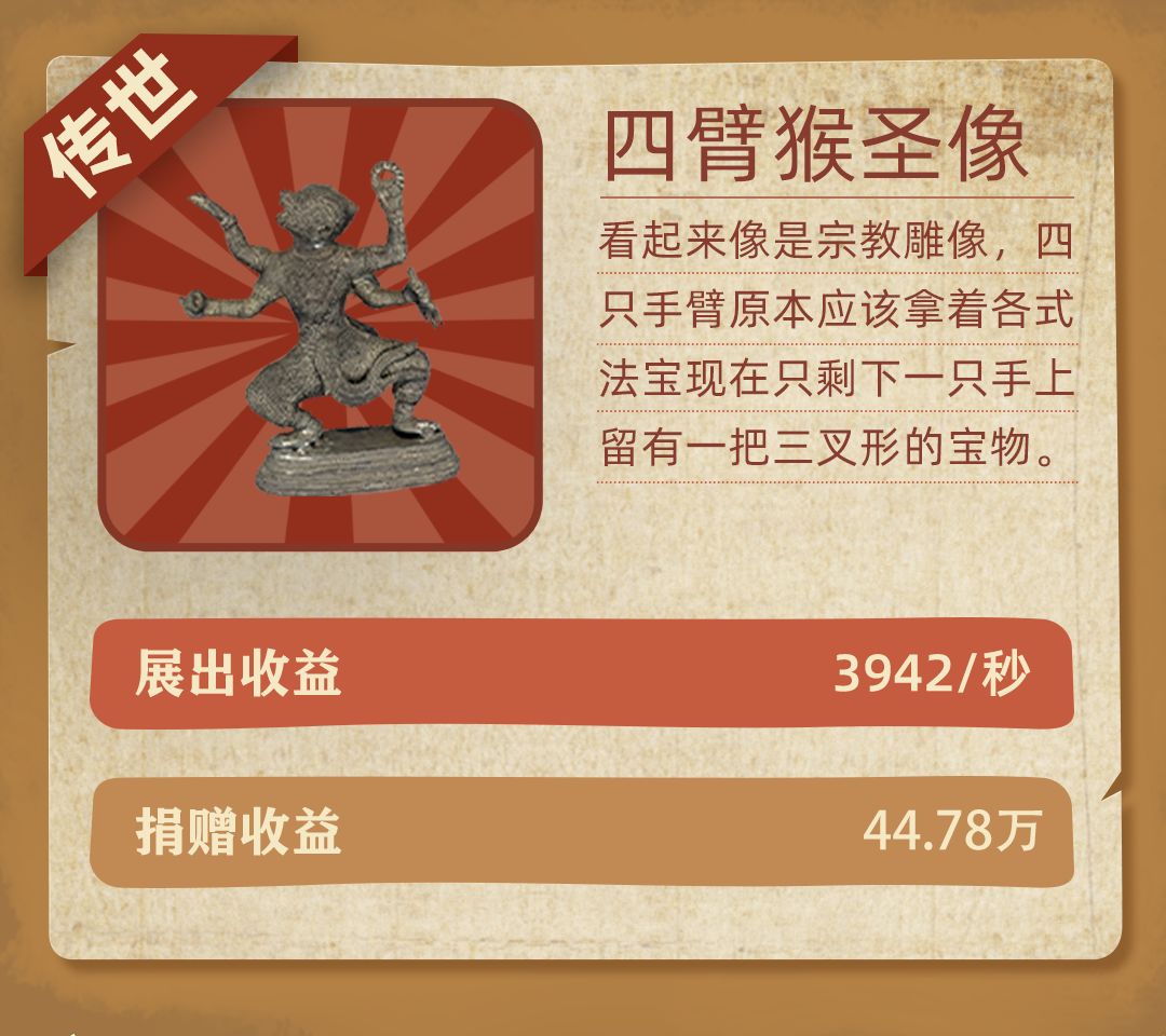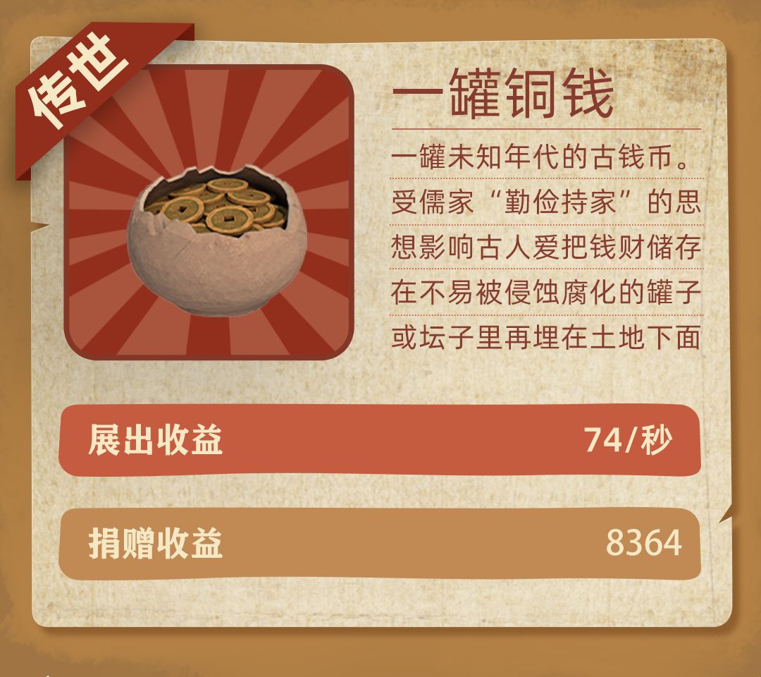 把这些挖到的宝贝进行“展览”或者“捐赠”,都可以获得收益哟!话不多说,开启本期的鉴赏吧,看看我挖到的价值连城的藏品,都是传世之宝哦~