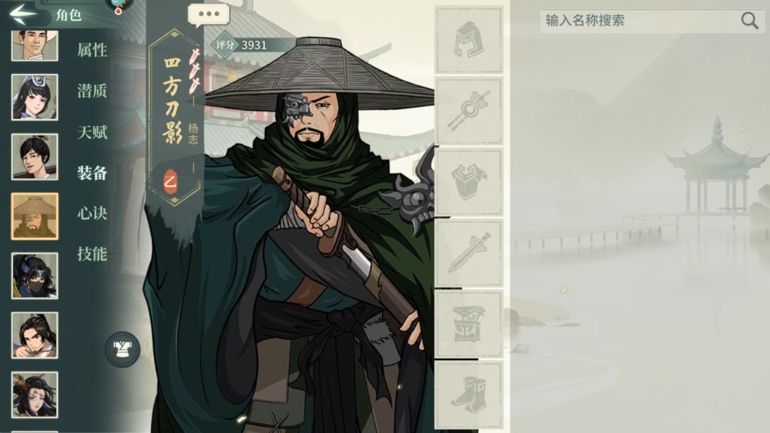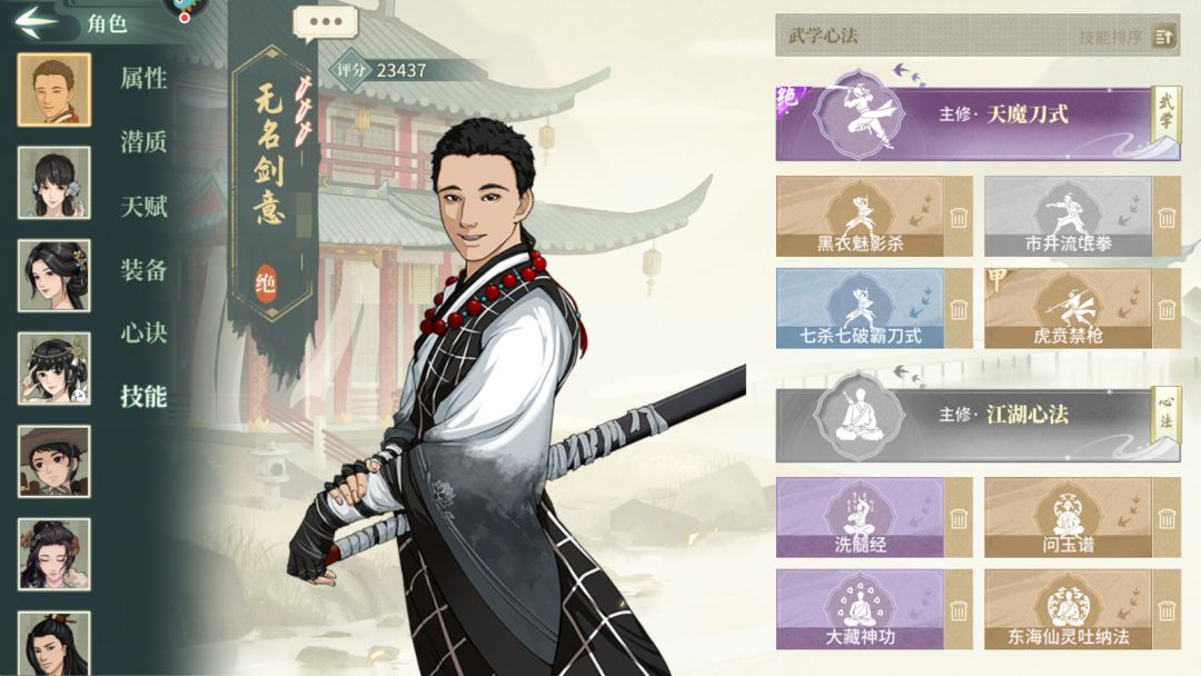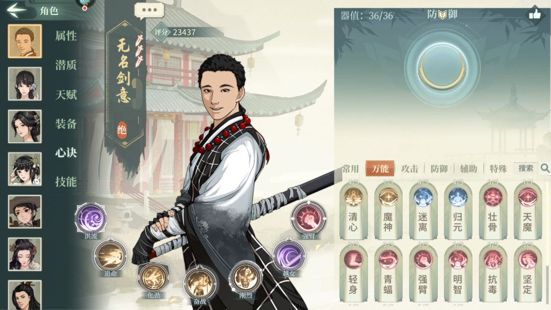 人物:33主角,30杨志(潜质:四方刀影,大幅度加刀系伤害),00糖丸(潜质:都行,用来挡刀),00甲桃花,这个可换其他加盾或者挡刀侠客