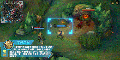 参与击败可重置E(3)的冷却时间,在冲向敌人时再次点击施放E(3)技能将会释放Q(1)技能,E(3)技能释放后的攻速加成和击败敌人重置冷却的机制赋予了莎弥拉强大的收割能力。