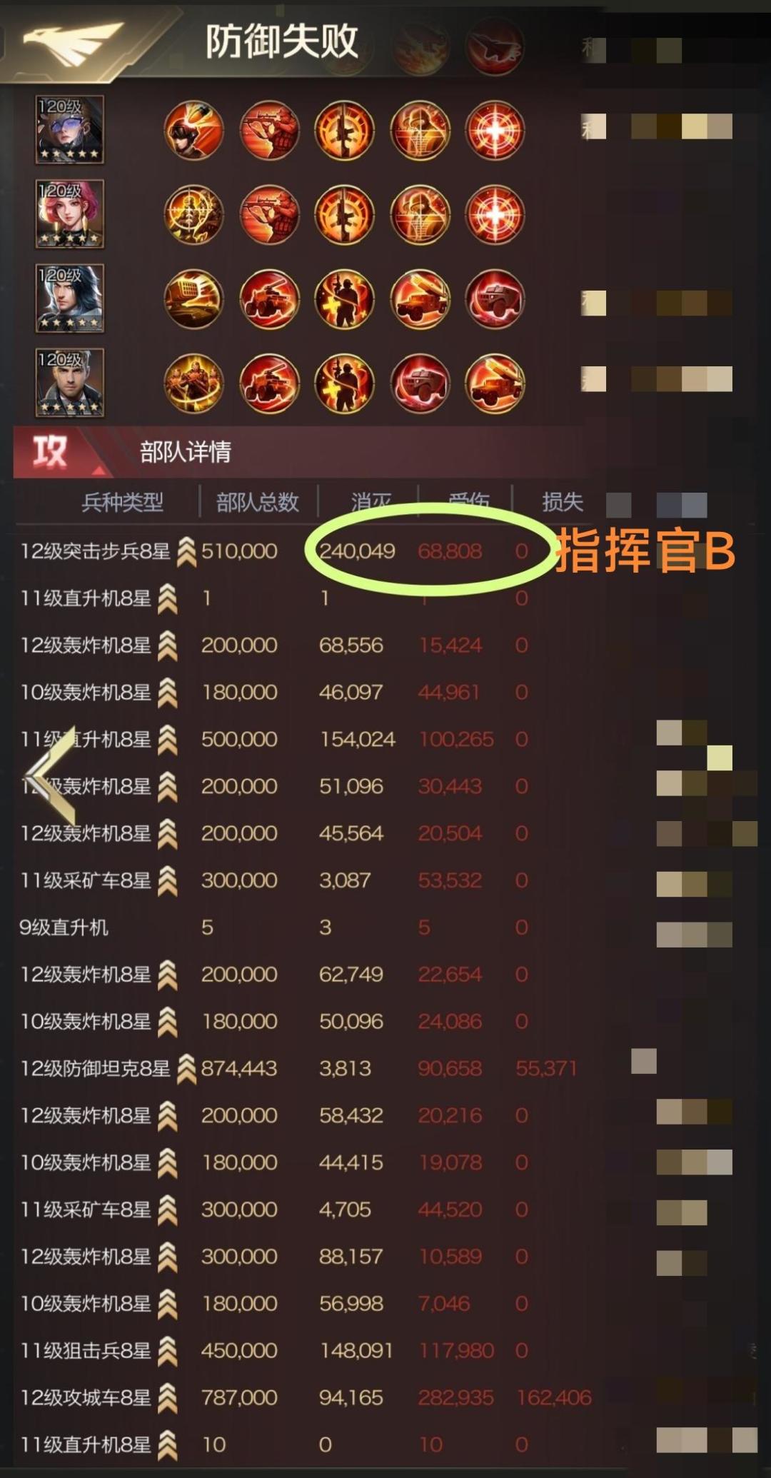 分析战报可以看出,双方都是清一色的三拐兵种,战损相差只有不到40万,进攻方战车战损较大,但是突击步兵非常强力,消灭24万,受伤6万。反观防守方的突击步兵,因为攻击方带了狙击兵和直升机的原因,战损高达17万,突击步兵的高战损间接导致了防守方防守失败。