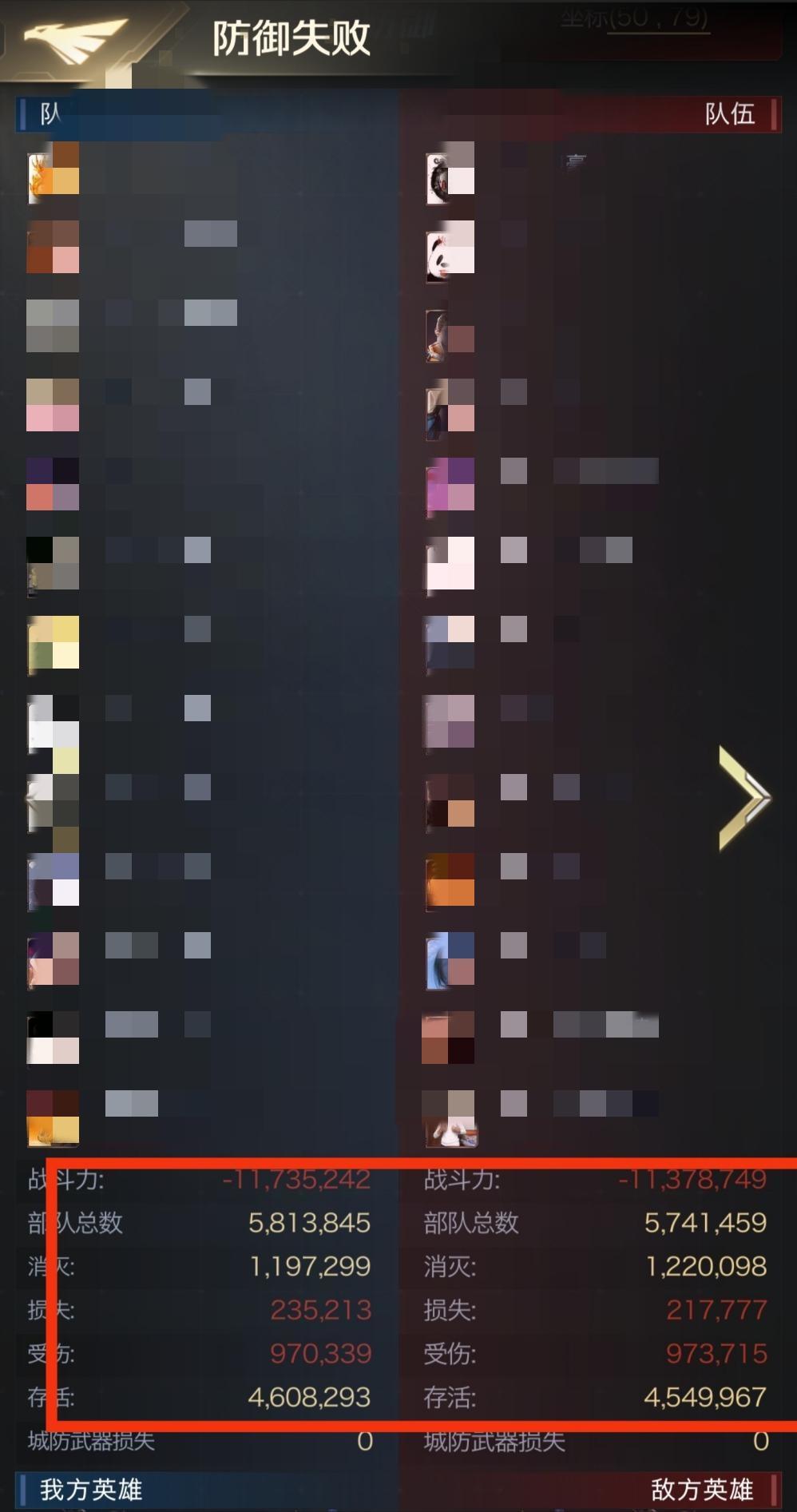 从战报可以看到,进攻方集结了574万兵力,阵容是一个防御坦克+两个矿车+双排轰炸机+一个突击一个攻城车一个狙击一个直升机的混编阵容,防守方581万兵力防守,阵容是三个防御坦克+双矿车+单排轰炸机+一突击一攻城车一狙击的阵容,最终进攻方以1137万比1173万的战损取得了战斗的胜利。
