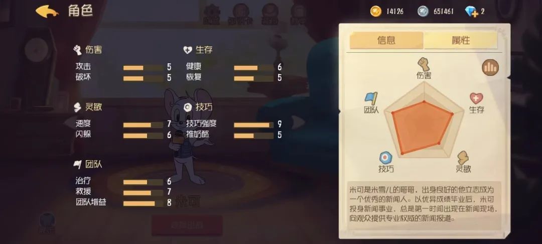 如果只看米可的基础属性,他的能力确实在一众老鼠中只能算是一般,尤其是推进能力,是比较薄弱的。