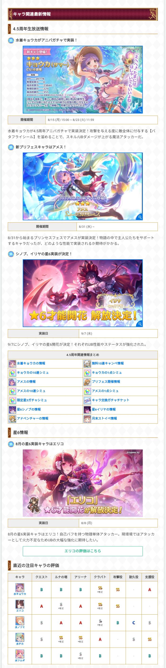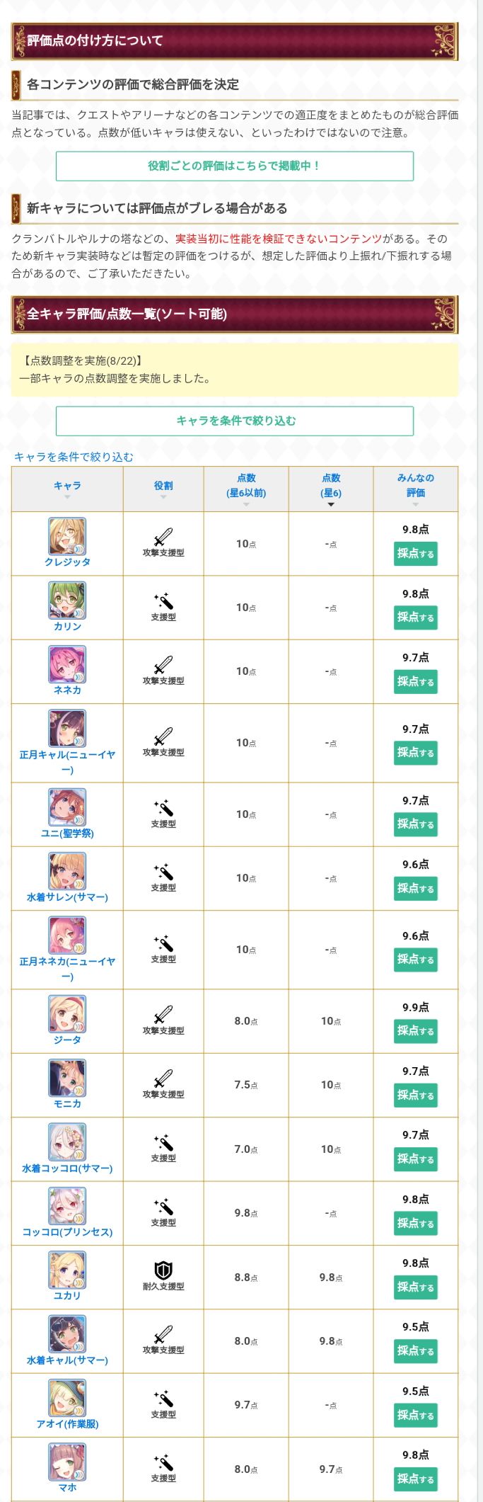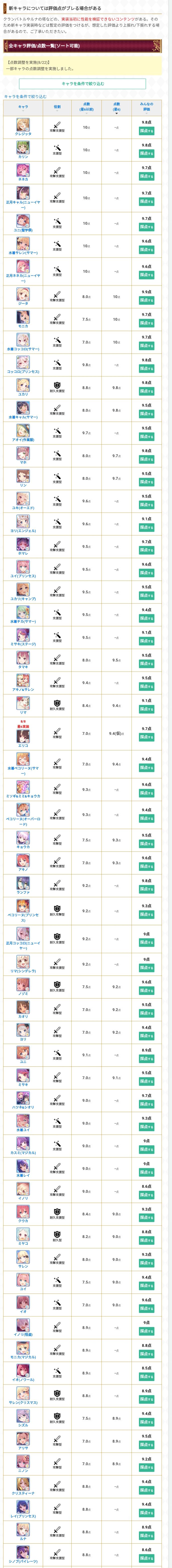 【公主连结】2022年8月节奏榜 最强角色排行榜 全角色分职务推荐角色彻底解说【PCR】