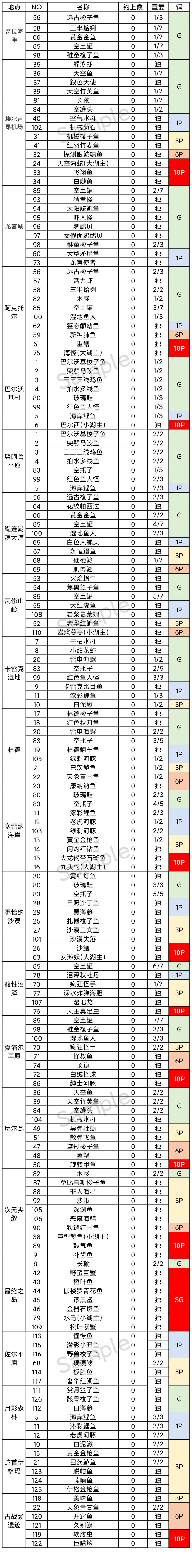 钓鱼图鉴/数量记录表(国服版本) - TapTap