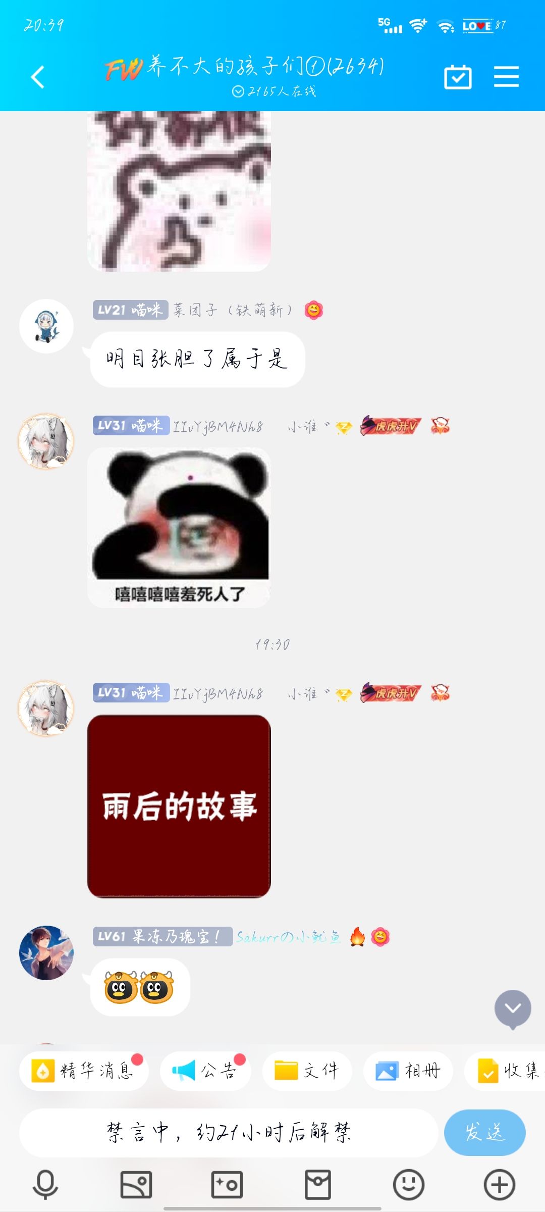 符离你是对我有什么意见嘛?桃花酥都没说什么怎么我发出来就禁言?八月十九号间隔一个小时半我觉得一点问题没有,因为之前符离连翻两小时聊天记录来禁言