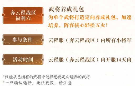 服务器六大福利重点:开局免费6武将选择(橙色60,紫色90,蓝色120碎片)
