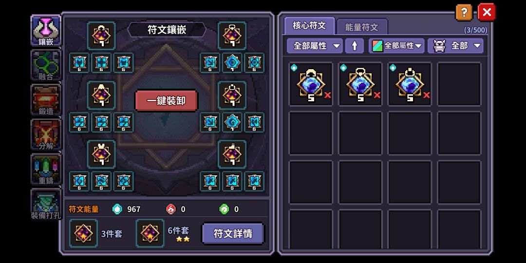東西換了寶石和符文,目前符文能量在960(「・ω・)「嘿