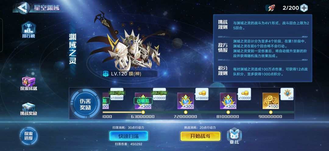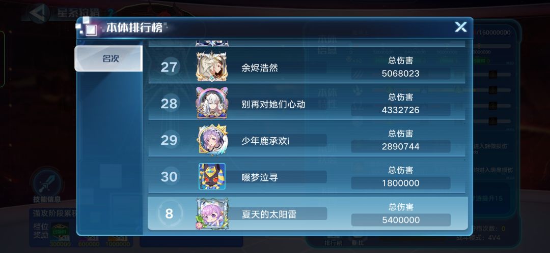 ★目前战队内部活跃,渊域已经可以打通,狩猎除了分身没打死,本体已经可以打掉,星空金币稳定每周最少可以获得2500以上