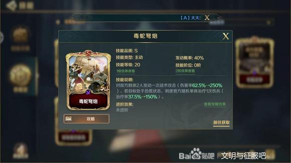 较为可观的40%主动技能,对敌方群体2人造成250%的战术伤害,并对我方随机单体提供150%治疗率的伤兵。是在【古斯塔夫战术】和朱元璋决胜发动的有效保障。