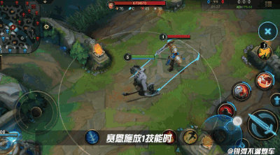 因此,我们可以在大招命中敌人后立刻开始蓄力Q(1)技能,同时观察敌人头上的控制条,等到大招控制即将结束时立刻释放Q(1)技能,控制无缝衔接,敌人欲哭无泪。
