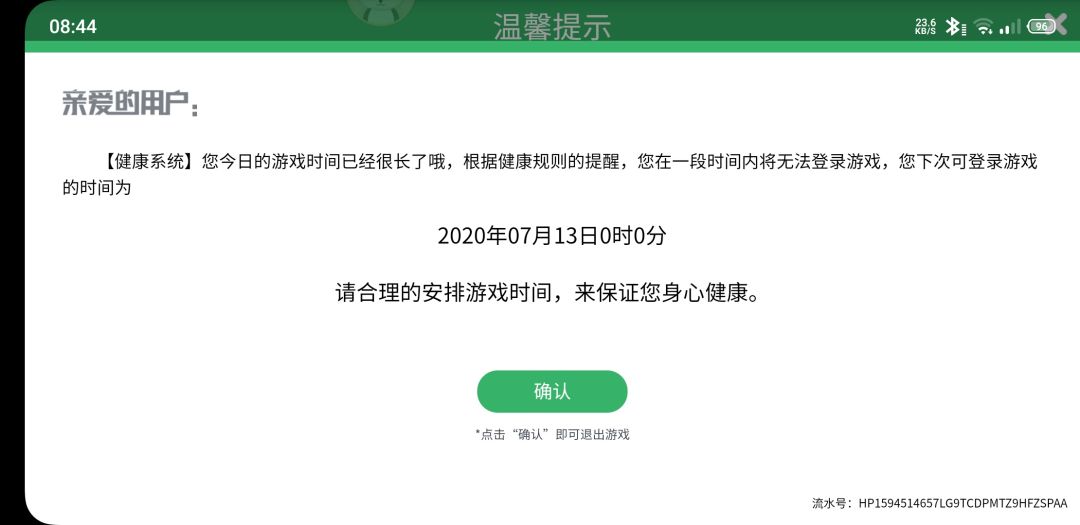 今天,我像昨天一样正常地打开游戏,突然出现了这个把我搞糊涂了。我16岁,八点之前不能玩游戏,现在才八点四十四你就告诉我今天的游戏时间到了?