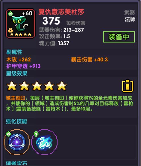 ①武器效果就是开始的时候触发几率低,后面依靠层数上来就无限雷电掌控。