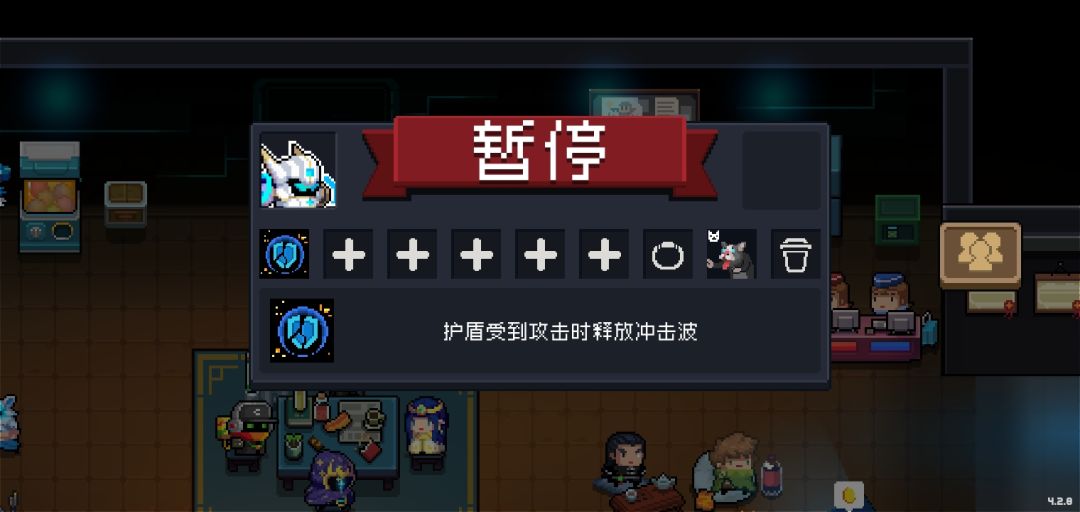 天赋效果是当护盾受到伤害时(包括毒伤和火伤)释放冲击波,冲击波可以消除弹幕(拥有近战反弹天赋可以使冲击波反弹弹幕)