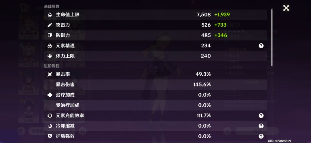 皇女lv70四雷套(爆伤头,雷杯 攻击沙)武器绝弦