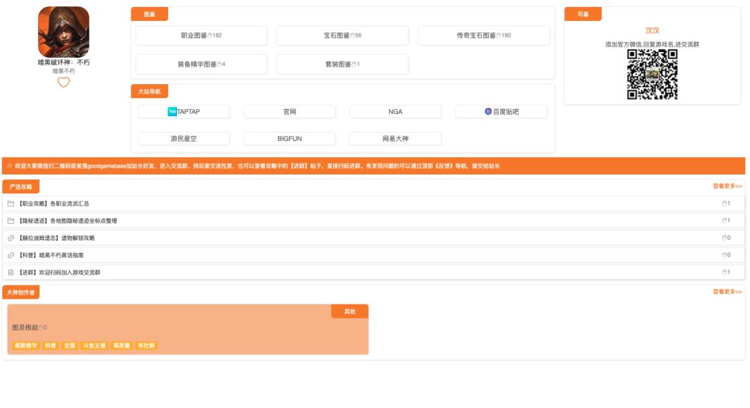 玩暗黑不朽也有一段时间了,整理了一个资料站,包括图鉴,大站导航,严选攻略,还有大神创作者导航。内容还在持续更新中。