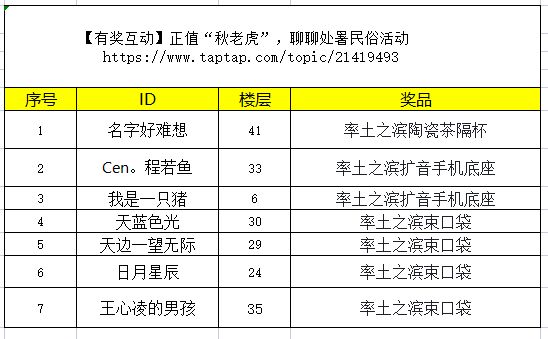 【有奖互动】正值“秋老虎”,聊聊处暑民俗活动顺利结束,感谢各位大人的参与,让我们恭喜以下幸运玩家获得奖励!