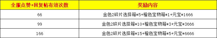 (点赞+回帖为一套,需各自达到对应数量方可领取对应奖励)