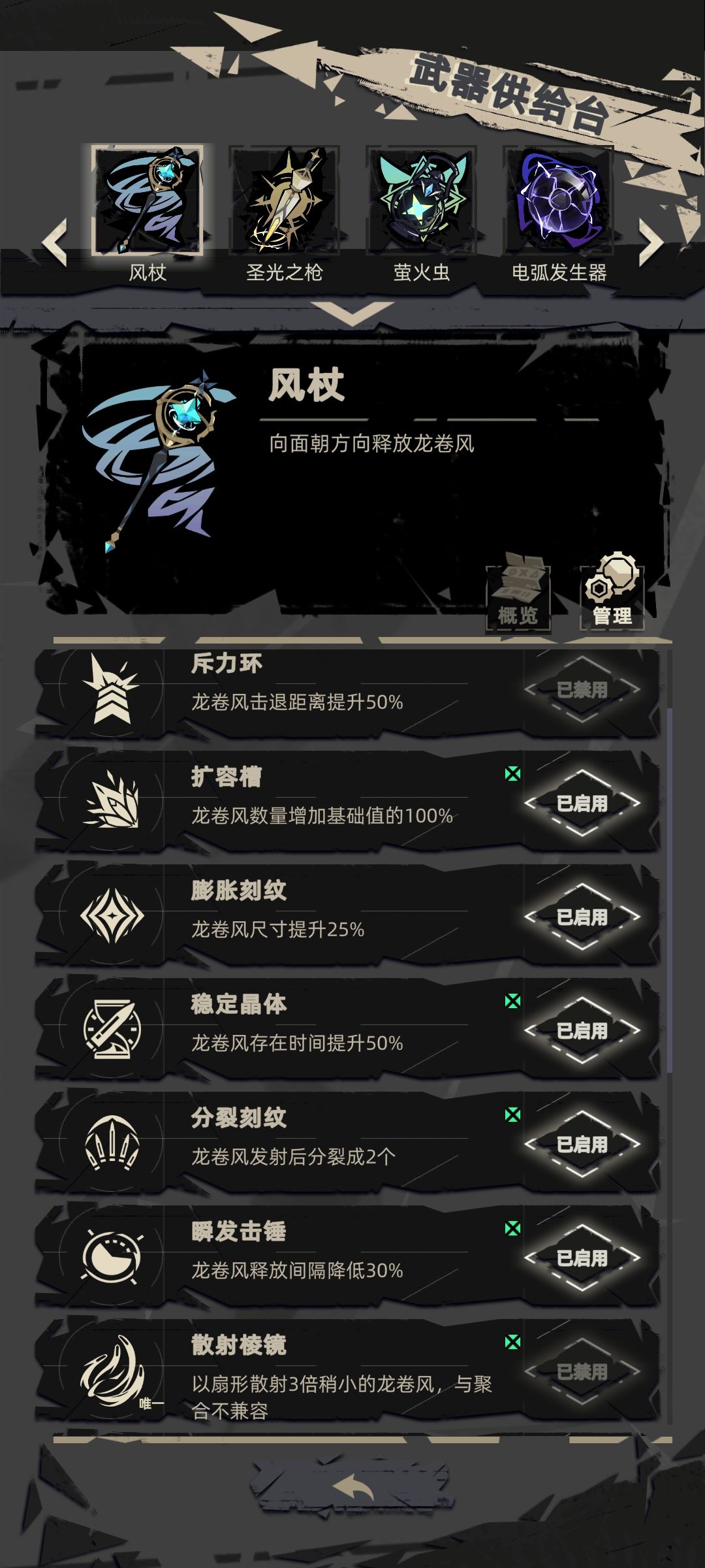 其他几个就比较随意,不推荐让风太大最好让武器的攻击范围都在同一个大小才能让金币最大化